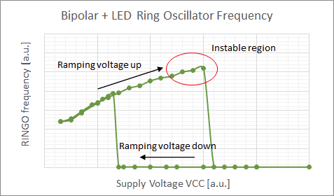 It turns out that almost all combinations of transistors and LEDs exhibited an instable region with apparently chaotic behavior.